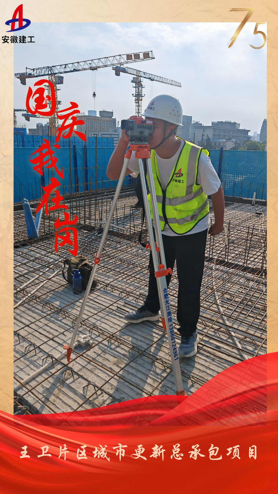 王衛(wèi)片區(qū)城市更新總承包項(xiàng)目技術(shù)員彭邵文堅(jiān)守崗位,確保澆筑混凝土?xí)r板面平整度。