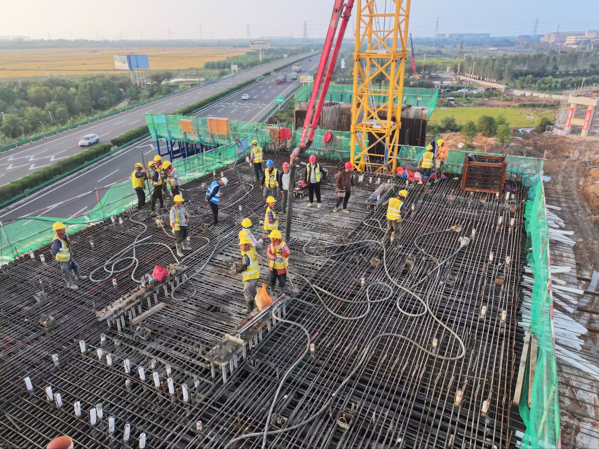 懸澆箱梁位于本項目豐樂樞紐主線特大橋主橋,采用45m+84m+45m跨徑,上跨G3京臺高速,導(dǎo)致項目施工難度大。項目部高度重視各施工環(huán)節(jié),精心組織、超前謀劃,并多次召開現(xiàn)場會,從施工工藝、安全管控、質(zhì)量控制到應(yīng)急保障措施等多方面進行周密部署,項目一線人員輪班堅守、攻堅克難,確保澆筑過程中安全質(zhì)量有序可控。