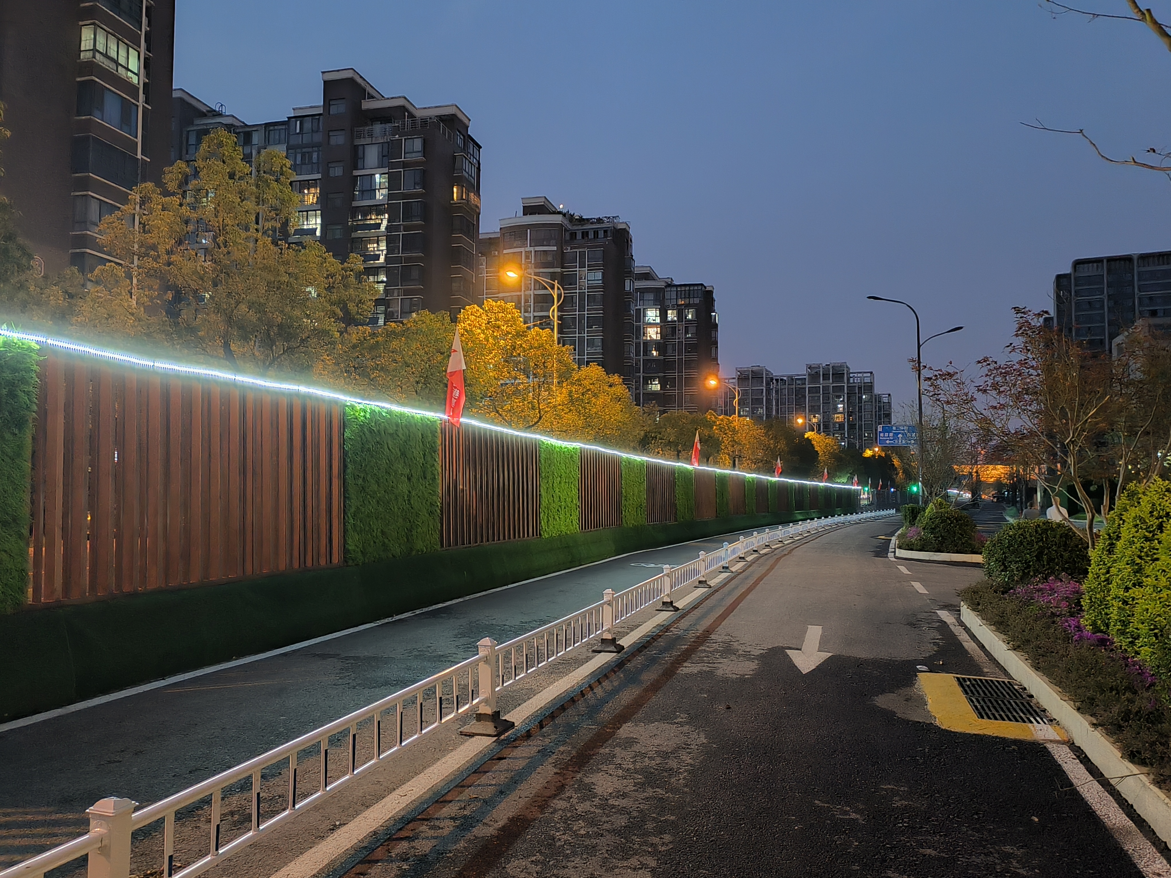 該項目改道段全長819米,寬18米,導改后的通行條件明顯優(yōu)于原有道路。項目部采用加設圍擋燈帶、路口處采用透明圍擋、進出口處設置警示標志等措施,嚴格區(qū)分機動與非機動車道,確保行人、行車視線不受阻,保障周邊居民的安全出行。