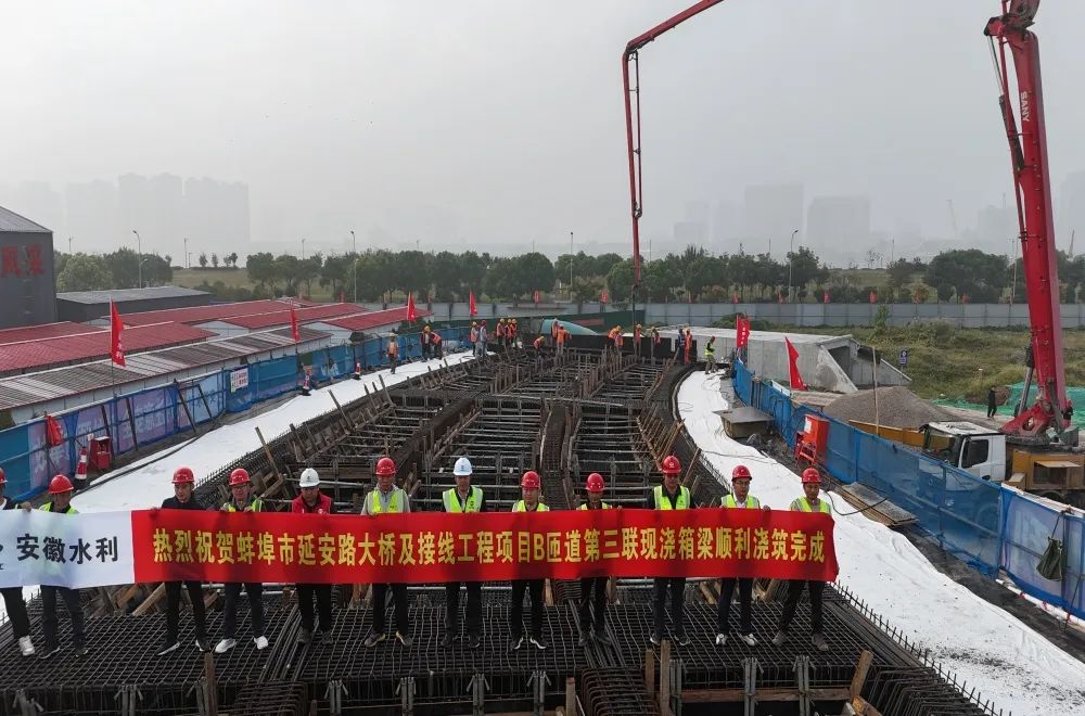 10月16日,歷經(jīng)10個(gè)小時(shí)的連續(xù)奮戰(zhàn),安徽水利蚌埠市延安路大橋及接線工程首件現(xiàn)澆箱梁順利澆筑,為項(xiàng)目建設(shè)按下加速鍵。