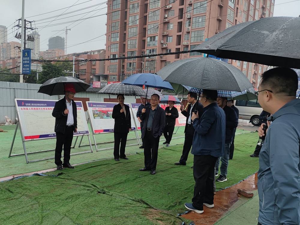 竇燦輝一行深入到項(xiàng)目施工現(xiàn)場(chǎng),實(shí)地查看了工程建設(shè)情況,詳細(xì)聽(tīng)取了關(guān)于工程概況、工程進(jìn)度、安全質(zhì)量、環(huán)保及文明施工等方面的匯報(bào),對(duì)施工現(xiàn)場(chǎng)安全防護(hù)管理、整體施工進(jìn)度、環(huán)保和文明施工等方面采取的對(duì)應(yīng)措施給予了充分肯定。竇燦輝指出,太和老大橋拆除重建的這項(xiàng)工作意義重大,項(xiàng)目要嚴(yán)格按照設(shè)計(jì)標(biāo)準(zhǔn)和規(guī)范進(jìn)行施工,遵守各級(jí)部門管理要求,持續(xù)加強(qiáng)安全、質(zhì)量、環(huán)保管理,高質(zhì)量完成太和縣人民路潁河大橋建設(shè)任務(wù)。