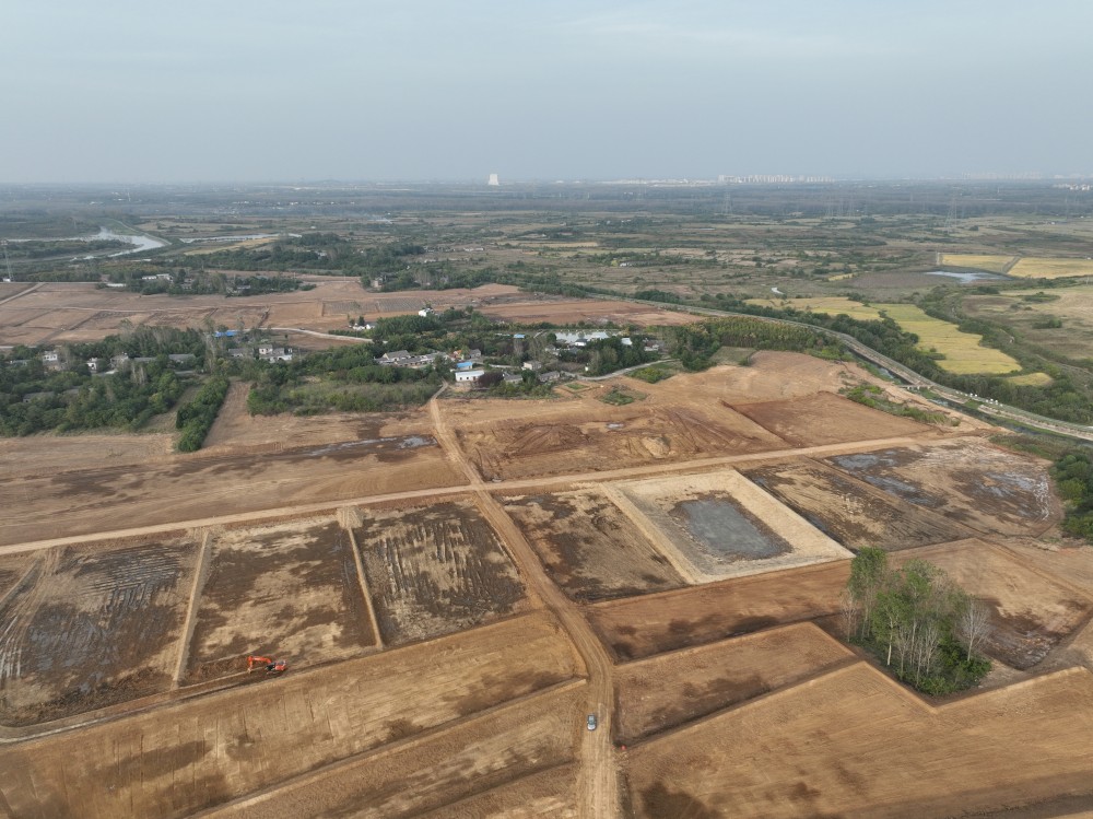 在項目建設現(xiàn)場,田野中一派熱火朝天的施工景象,田間挖掘機陣陣轟鳴,大型機械來回穿梭平整田塊及開挖溝渠,多臺大型設備同時作業(yè),緊張有序進行著,確保冬麥播種不誤時。