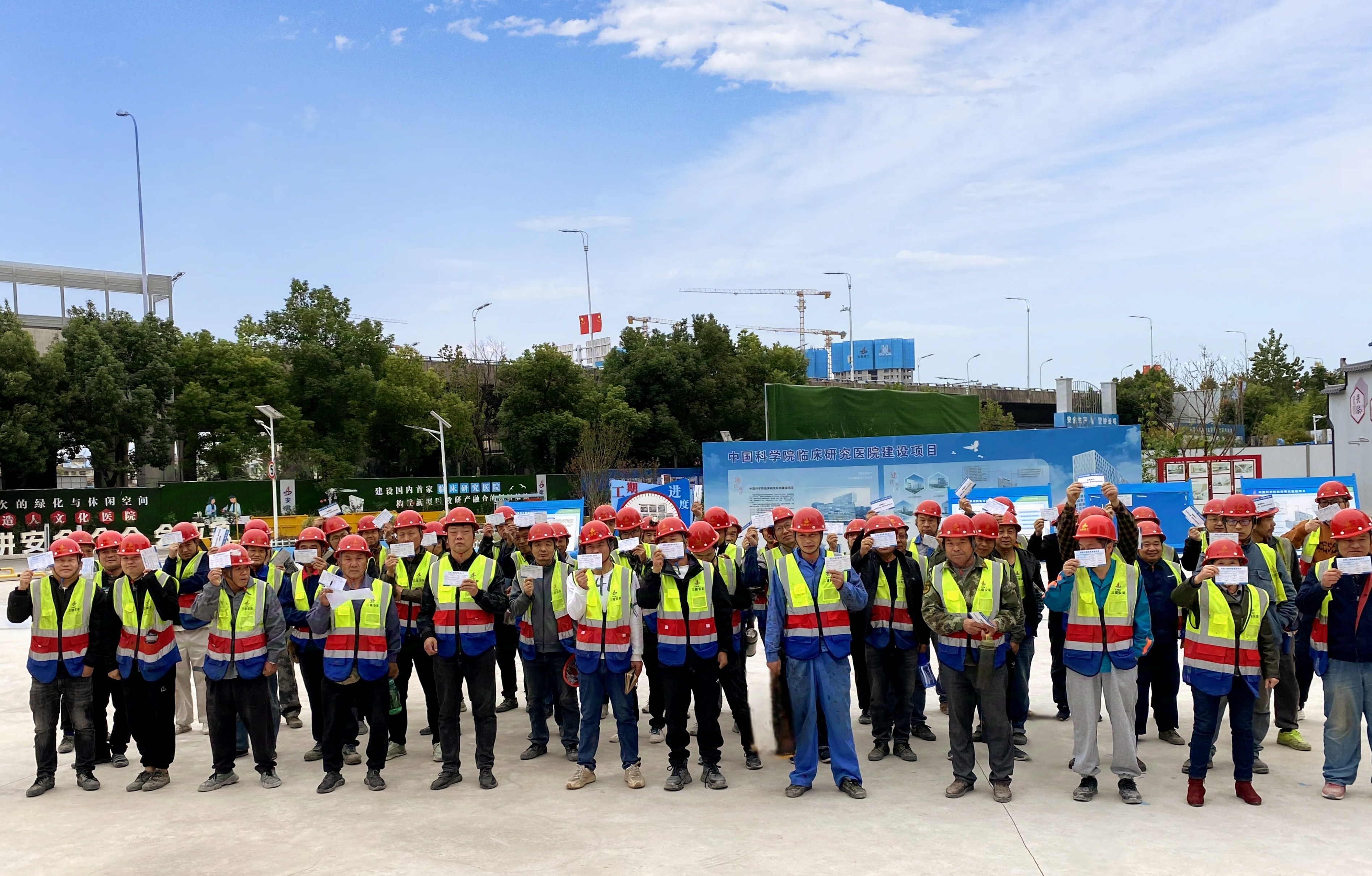 中科院臨床研究醫(yī)院安裝項目部為工友發(fā)放農(nóng)民工維權(quán)信息告示卡
