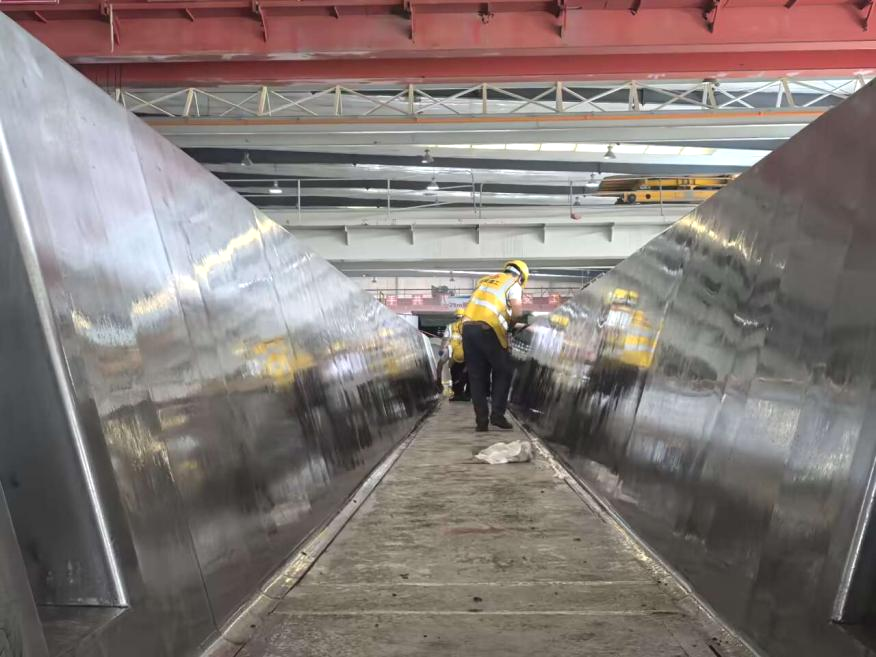 以往在箱梁預(yù)制時,鋼模板采用人工手持電動角磨機及脫模劑手動涂刷作業(yè),存在施工效率低、清理不徹底、涂刷不均勻等直接影響預(yù)制梁體外觀和質(zhì)量的問題。此外,人工打磨周期長、無法與前后工序智能銜接,也制約了梁板流水線生產(chǎn)工業(yè)化建造的發(fā)展。