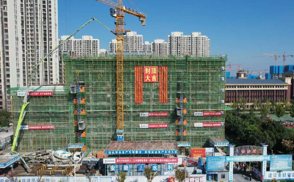 10月24日,安徽水利新城實驗學校臨港分校擴建宿舍項目主體結構封頂,項目正式進入裝飾裝修及設備安裝階段。