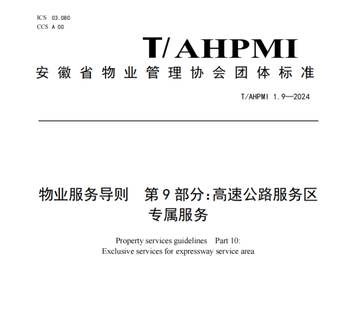 10月28日,由安徽建工集團新時代物業(yè)管理有限公司參編的《安徽省物業(yè)管理協(xié)會團體標準》中《物業(yè)服務導則 第9部分:高速公路服務區(qū)專屬服務》正式發(fā)布。