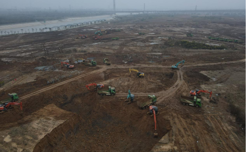 自開工以來,項目部共組織150臺挖掘機、180臺自卸車和160臺推土機在5669畝施工范圍內(nèi)24小時同時作業(yè)。目前已完成土方平整563萬m3,占土方總量的79%。渠道、路基及田埂等工程也已陸續(xù)開始施工。