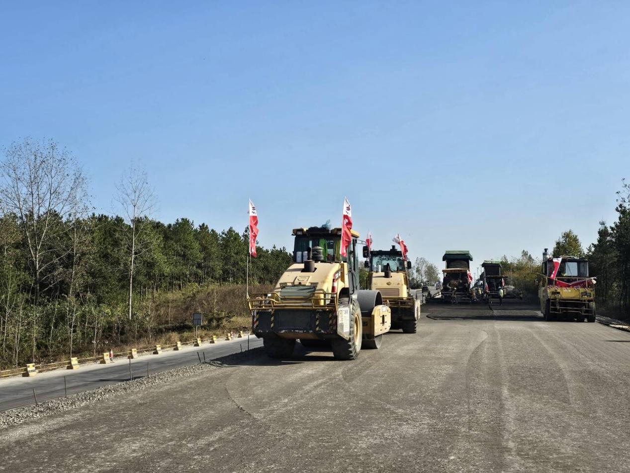 11月5日,建工路港G104項(xiàng)目楊廟段水穩(wěn)下基層(SK12+000-SK12+700)順利攤鋪完成。