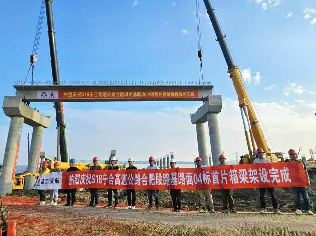 11月14日下午,隨著S18寧合高速公路合肥段路基路面04標(biāo)AK0匝道(1#-3)25米首片箱梁順利架設(shè)于預(yù)定位置,寧合高速項目取得重大進(jìn)展,正式進(jìn)入全面加速推進(jìn)的新階段。