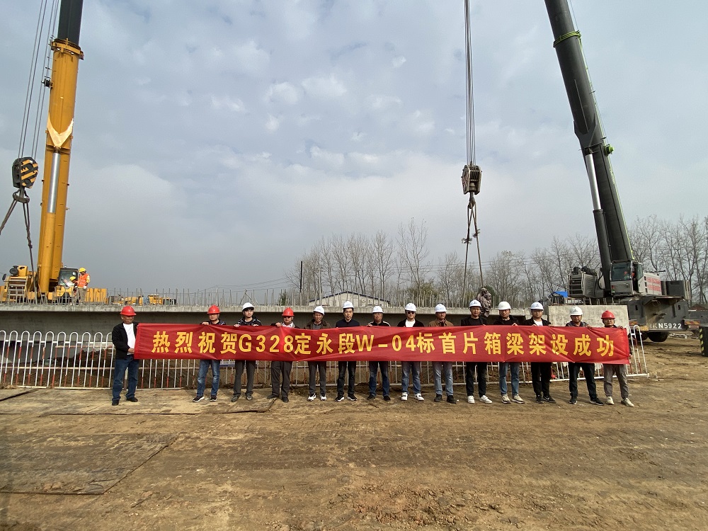 G328項(xiàng)目起點(diǎn)位于定遠(yuǎn)縣城北,接北京西路,向西經(jīng)城北水庫(kù)北側(cè)、解放水庫(kù)北側(cè)、西卅店南側(cè)、在永康鎮(zhèn)南側(cè)上跨G3京臺(tái)高速公路,終點(diǎn)接永康鎮(zhèn)西側(cè)G328(原S334)彎道,全長(zhǎng)33.668公里。為確保首片梁架設(shè)任務(wù)順利完成,項(xiàng)目部超前謀劃,科學(xué)組織,制定了詳細(xì)的施工組織計(jì)劃,現(xiàn)場(chǎng)員工各司其職,持續(xù)奮戰(zhàn),在確保梁體安全運(yùn)輸?shù)幕A(chǔ)上更加快了架設(shè)進(jìn)度。