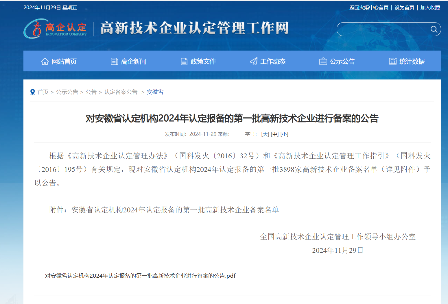 近日,根據(jù)《高新技術企業(yè)認定管理辦法》和《高新技術企業(yè)認定管理工作指引》有關規(guī)定,經企業(yè)申報、形式審查、專家評審等嚴格的評審程序,港通新材料公司順利通過2024年安徽省第一批“高新技術企業(yè)”認定。