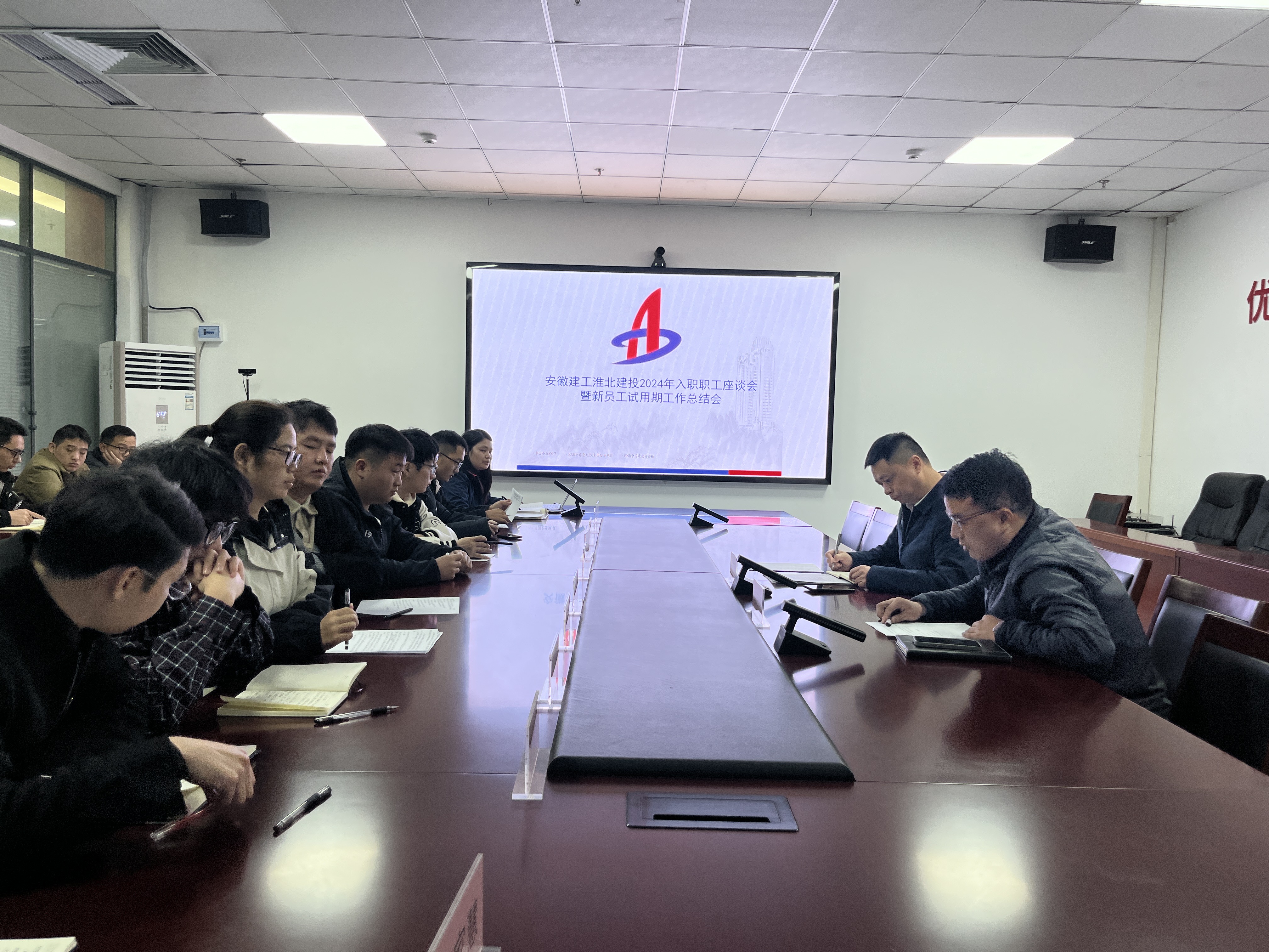 為進一步助力新員工融入,引領新人成長,2024年12月3日上午,淮北建投在公司會議室召開了“2024年新入職職工座談會暨新員工試用期工作總結會”?;幢苯ㄍ饵h委書記、董事長、總經理張玉明參會,淮北建投黨委委員、副總經理馬陽陽主持會議,2024年18名入職新員工到場參會。